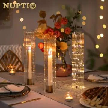 NUPTIO Hurricane Candle Holder for Wedding: 2.5 x 12 inches Ribbed Glass Shade for Candlestick - Bulk Decorative Bottomless Cylinder Taper Candle Cover for Outdoor Table Centerpiece