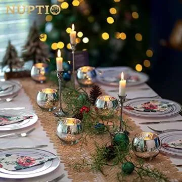 Nuptio Tealight Candle Holders Glass 6 Pack Silver Tea Light Candle Holder Votive Bulk Bling Small Vase Mercury Bowls Baby Shower Wedding Centerpiece Mantle Birthday Party Dinner Tables Decoration