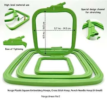 Nurge 5Pcs Plastic Small Square Embroidery Hoops, Cross Stich Hoop, Punch Needle Hoop Multicolor (Small)