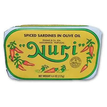 Show moreDiscover the rich and vibrant flavors of the NURI Portuguese Sardines in Spicy Olive Oil. Sourced from the pristine seas surrounding Portugal, these delectable sardines are a testament to traditional canning techniques that have been honed over generations. Each 4.4 oz can is packed with succulent sardines, swimming in a luscious blend of high-quality olive oil and a kick of spices, delivering a taste experience that's both wholesome and bold. Perfectly versatile, these sardines can elevate any dish from a simple snack to a gourmet meal.