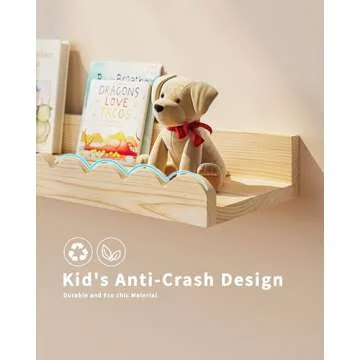 Nursery Book Shelves, 4-Pack Wood Floating Shelves for Wall Kids, Scalloped Shelves, Wall Book Shelves for Bedroom Kids, Toddler Room, Baby Room, Nursery Decor(Wood, 16.5 Inches)