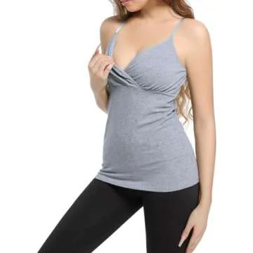 Nursing Tops Tank Shirts Cami for Maternity and Breastfeeding (Medium, Black+Grey+Light Green Dot (3Pcs))