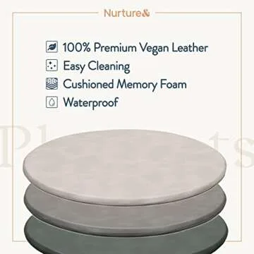 Show more Introducing the Nurture& Baby Padded Play Mat, a stylish and versatile addition to your home designed to support your child's developmental journey. Crafted from premium, wipeable vegan leather, this play mat epitomizes a blend of comfort, safety, and style, guaranteeing that it will seamlessly integrate into any living space. With its unique round shape measuring a generous 51 inches, it provides ample room for babies and toddlers to explore through tummy time, crawling, and playful jumps, all while ensuring a luxurious feel that is reminiscent of real leather.