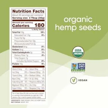 Show more Introducing Nutiva Organic Shelled Hempseed, the ultimate plant-based superfood that is perfect for elevating your dietary regimen. With a delightful nutty flavor reminiscent of pine nuts, this versatile seed is not only an excellent source of plant protein but also boasts a remarkable 33% Omega-3 content, making it a fantastic addition to salads, smoothies, or your favorite vegan recipes.