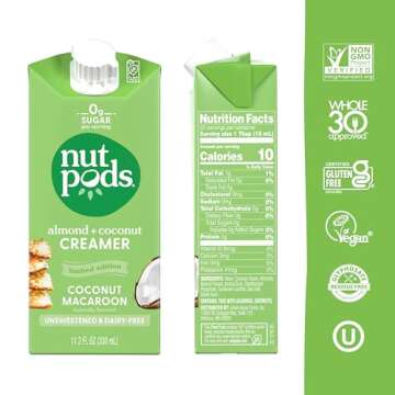 nutpods Coconut Macaroon Unsweetened Dairy-Free Creamer, Made from Almonds and Coconuts, Whole30, Keto, Gluten Free, Non-GMO, Vegan, Kosher (3-Pack)