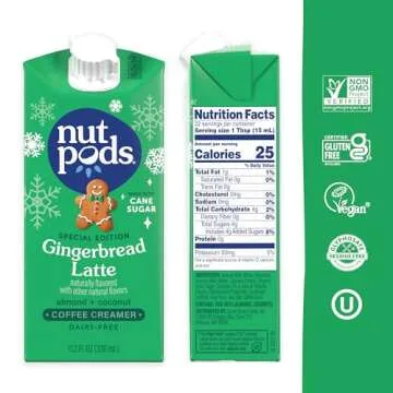 Show moreIndulge in the rich and cozy flavors of the season with **nutpods Gingerbread Latte Non-Dairy Coffee Creamer**. This delightful creamer is crafted to elevate your coffee experience, transforming every sip into a moment of pure bliss. Its creamy texture melds seamlessly with your favorite brews, allowing the full-flavor profile of gingerbread to shine through. Each package contains three 11.2oz shelf-stable containers, making it easy to stock up and bring festive cheer to your coffee routine without the hassle of refrigeration. Say goodbye to bland coffee and hello to your new creamy companion.
