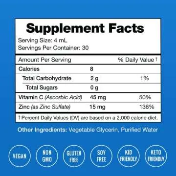 NutraChamps Liquid Zinc for Kids & Adults, Vegan, Pure Ionic Zinc Drops Enhanced with Vitamin C, Elemental Zinc Supplements for Immune Support, Sugar-Free Zinc Liquid 4 oz