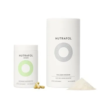 Introducing the Nutrafol Women's Hair Growth Supplement and Collagen Peptides Powder – the ultimate duo designed specifically for women aged 18 to 44! This powerful combination not only targets the underlying causes of hair thinning but also nourishes your hair from root to tip. With this duo, you get one month’s supply of clinically proven supplements that promote visibly thicker, longer, and stronger hair while combating the effects of aging. Experience the benefits of a supplement...