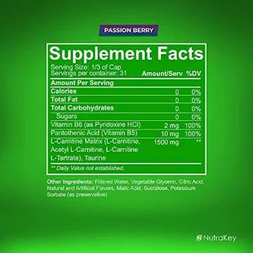 Show moreExperience the power of energy and recovery with NutraKey Liquid L-Carnitine Berry, a premium supplement designed to elevate your fitness journey. Packed in a convenient 16oz bottle, each serving delivers an impressive 1500mg of L-Carnitine, along with Acetyl L-Carnitine and L-Carnitine-L-Tartrate, which work synergistically to fuel your body on a cellular level. Unlike traditional energy boosters, NutraKey is **stimulant-free**, making it a versatile addition to your daily routine. Whether you’re preparing for an intense workout or looking to recover efficiently, this delicious berry-flavored liquid ensures you are always at your peak performance.