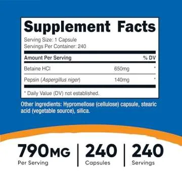 Nutricost Betaine HCl + Pepsin 790mg, 240 Capsules - Gluten Free & Non-GMO
