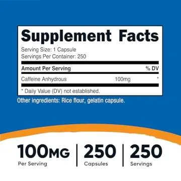 Show moreSupercharge your day with Nutricost Caffeine Pills, the ultimate energy booster that fits seamlessly into your active lifestyle. Each capsule delivers a potent 100mg of caffeine, designed to enhance focus, alertness, and overall cognitive performance without the sugar or unnecessary additives found in traditional energy drinks. With 250 capsules per bottle, you have the flexibility to customize your caffeine intake, whether it’s for a mid-morning pick-me-up or an afternoon energy revival. These capsules are your go-to solution for reliable and effective energy support, helping you tackle your daily challenges with vigor.