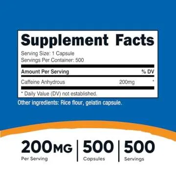 Show moreUnleash your potential with Nutricost Caffeine Pills, the ultimate solution for anyone seeking a reliable energy boost! Each capsule contains 200mg of pure caffeine, strategically formulated to provide the energy you need to tackle your day—be it early mornings, intense workouts, or late-night study sessions. With a generous count of 500 capsules per bottle, you can enjoy the convenience of sustained energy without breaking the bank. Say goodbye to the expense and crash of traditional energy drinks; these capsules are here to power your journey with simplicity and efficiency.
