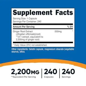 Show moreIntroducing Nutricost Ginger Root Extract, your go-to solution for promoting overall health and wellness. Packed with a robust 2,200mg equivalent of ginger root per serving, each capsule contains 550mg of a highly concentrated 4:1 extract, ensuring that you receive the potent health benefits of ginger. Manufactured in a GMP compliant, FDA registered facility, this supplement is crafted with the utmost care, allowing you to trust its quality and effectiveness.