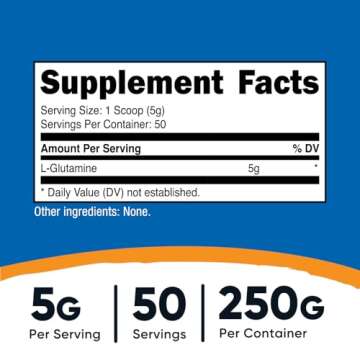 Show moreIntroducing a revolutionary addition to your fitness routine: Nutricost L-Glutamine Powder. This powerhouse supplement delivers 250 grams of L-Glutamine per bottle, perfect for athletes and fitness enthusiasts seeking to enhance their performance and recovery. With 50 servings in each container and 5 grams of L-Glutamine per serving, you'll have everything you need to push your limits.