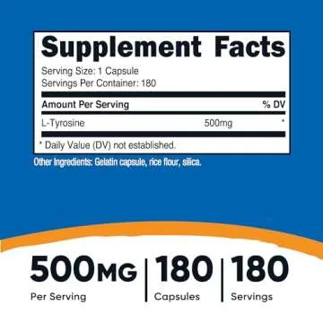 Nutricost L-Tyrosine 500mg, 180 Capsules - Gluten Free & Non-GMO