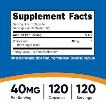 Nutricost Policosanol 40mg Capsules - 120 Gluten-Free, Non-GMO Supplement
