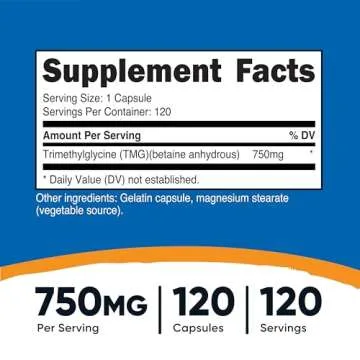 Show moreNutricost TMG (Trimethylglycine) 750mg is your essential partner in optimizing health and enhancing wellness. Each bottle contains 120 easy-to-swallow capsules, each packed with a powerful 750mg of high-quality Trimethylglycine (TMG). Extracted using cutting-edge methods, our TMG is crafted to support a variety of key bodily functions, from promoting cellular energy to encouraging optimal liver function. The product is proudly manufactured in a GMP-compliant, FDA-registered facility, ensuring safety and efficacy at every stage of its production. Plus, with our dedication to quality, all Nutricost products are third-party tested to guarantee you receive only the best.