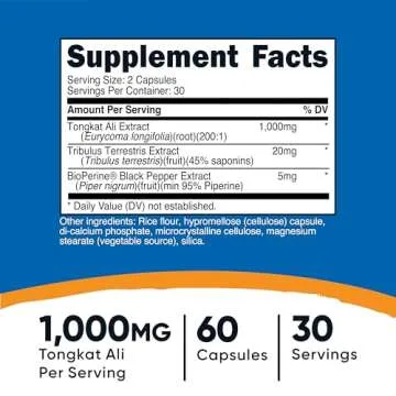 Nutricost Tongkat Ali 1,000mg 60 Capsules - with Tribulus Terrestris and BioPerine, Vegetarian Caps, Non-GMO, Gluten Free, Potent Extract