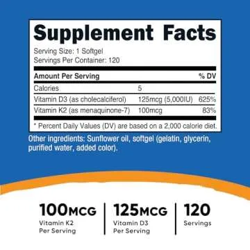 Show moreDiscover the remarkable health benefits of Nutricost's Vitamin K2 + D3 Supplement, a powerful duo designed to promote optimal bone and heart health. This supplement is not just an ordinary vitamin boost; each bottle comes with an impressive 120 servings of a meticulously crafted formula that combines 100 MCG of Vitamin K2 (MK7) with a robust 5000 IU of Vitamin D3. Together, they work synergistically to enhance your body’s ability to absorb calcium, directing it precisely where it is most needed—your bones. Notably, Vitamin D3 also supports immune function and lifts your mood, making it a stellar addition to your daily health arsenal.