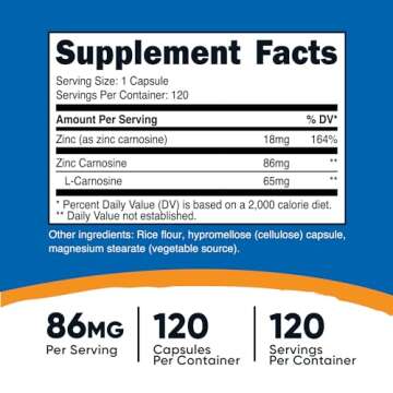 When compared to similar products on the market, Nutricost Zinc Carnosine stands out due to its exceptional formulation and commitment to quality. Many competitor brands offer lower doses, lesser transparency in sourcing, or additives that could detract from purity. With Nutricost, you receive a potent 86mg of Zinc Carnosine per serving in a formulation free of unnecessary fillers, ensuring you invest in a product that delivers value. This dedication to quality and efficacy makes Nutricost a superior choice for consumers concerned about their health and wellness.