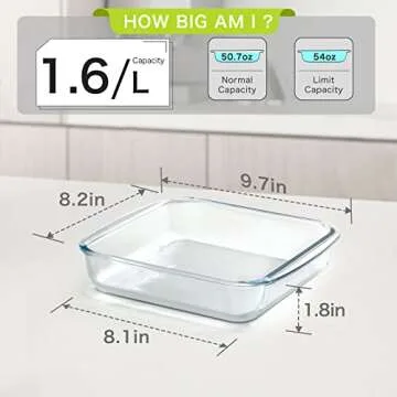 NUTRIUPS 1.7QT Glass Baking Pan, Square Baking Dish for Oven