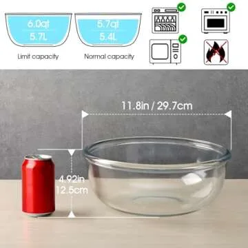 NUTRIUPS 6 Quart Large Glass Mixing Bowl, Clear Large Salad Bowls Glass Big Mixing Bowls for Kitchen