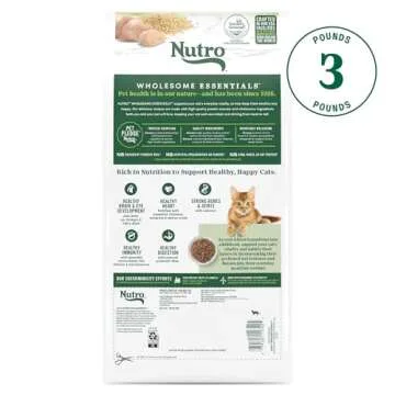 Show more Nourish your beloved kitten with Nutro Wholesome Essentials Kitten Dry Cat Food, Chicken & Brown Rice Recipe, where real chicken takes center stage as the #1 ingredient. This dry cat food is premium quality, boasting a thoughtfully crafted recipe using non-GMO ingredients that ensures your furry friend receives the best nutrition without the presence of chicken by-product meal, corn, wheat, or soy. Designed for the unique needs of kittens, it includes DHA, an Omega-3 fatty acid crucial for healthy brain and eye development.
