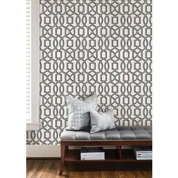 NuWallpaper NU1696 Uptown Trellis Black/White Peel & Stick Wallpaper, Multicolor