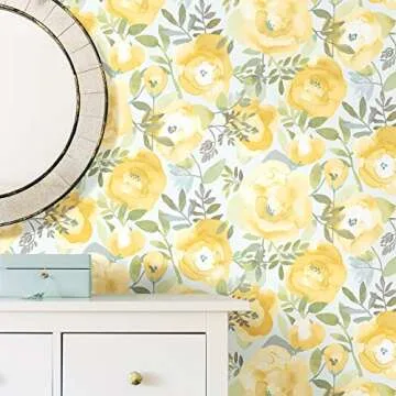 NuWallpaper NU3036 Peachy Keen Peel & Stick Wallpaper, Yellow