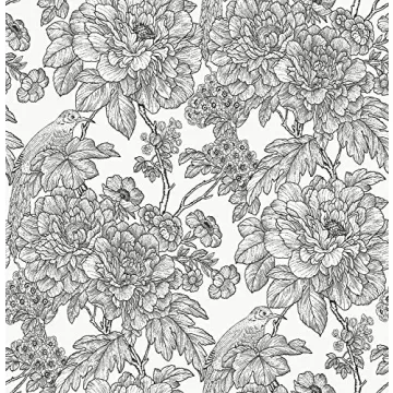 NuWallpaper NUS3544 Sudbury Peel & Stick Wallpaper - Elegant Black Floral Design
