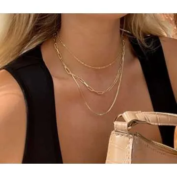 NUZON 3 Gold Layered Choker Necklace for Women 18K Gold Paperclip Chain Necklace Sets Simple Multi Layering Jewelry