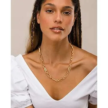 NUZON Gold Chunky Chain Necklace for Women 18K Gold Plated Thick Paperclip Link Choker Necklace Layering Statement Jewelry 19''