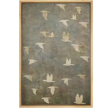 Show more Introducing the stunning NWT Framed Canvas Print Wall Art Grunge Gold Flying Bird Collage, a mesmerizing blend of nature and artistry designed to captivate those with a refined taste for decor. This 24"x36" piece features high-resolution illustrations that bring the elegance of the wilderness into your living space. Crafted with a wooden frame that adds a rustic charm, the vibrant hues of this modern artwork will infuse life into any room—be it your living room, bedroom, office, or even a classy dining area. The professional-grade quality ensures that this art piece not only enhances visual appeal but also serves as a conversation starter.