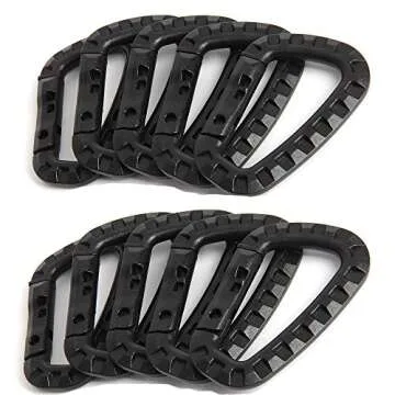 Show moreNxtop Tactical Carabiner Keychain - 10 Pack is your ultimate companion for all outdoor adventures! Designed with high-quality plastic and weighing in at a mere fraction of what you'd expect, these carabiners provide a strong load-bearing capacity while remaining durable and wear-resistant. With excellent tensile strength, the quick-locking design ensures that your gear is secure. Measuring 3.35 inches by 2.2 inches for the outer size and 2.36 inches by 1.3 inches for the inner size, they are thoughtfully crafted to meet various needs, whether you're camping in the woods or biking through the city.