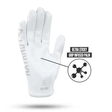 Nxtrnd G1 Youth Football Gloves, Kids Sticky Receiver Gloves (White, Youth Medium)