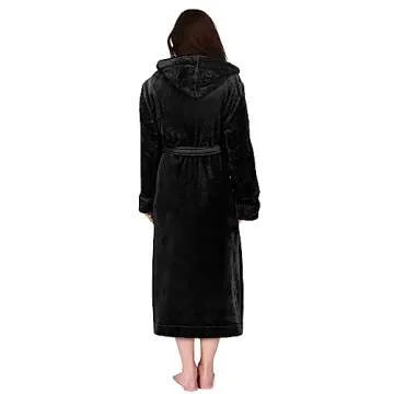 NY Threads Women's Fleece Hooded Bathrobe Plush Long Spa Robe - Medium, Black
