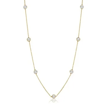 Show moreElevate your jewelry collection with the NYC Sterling Women Gold Plated Sterling Silver 3MM Round Cubic Zirconia Station Necklace. This exquisite piece combines the timeless elegance of sterling silver with the luxurious appeal of gold plating, making it a versatile accessory for any outfit. The necklace features 3mm round cut cubic zirconia stones in a bezel setting, with a AAA quality center stone that sparkles with every movement. The 16"L-30"L cable chain is adjustable for a perfect fit, and the spring lock closure ensures security. Crafted to be lead and nickel free, this necklace is safe for all skin types, including those with sensitive skin. Each purchase comes with a stylish blue or black velvet pouch, making it an ideal gift for loved ones.
