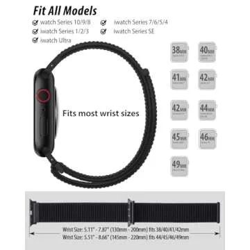 Nylon Loop Sport Band Compatible with Apple Watch Bands for Women Men 40mm 44mm 45mm 46mm 49mm 38mm 42mm, iWatch Wrist Straps for Ultra 2, SE, Series 10 9 8 7, Breathable, Soft Band Ideal for Outdoor