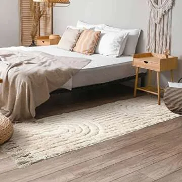 Nymphia Boho Runner Rug 2x6 - Beige Hallway Rug Runner Washable Woven Tufted Rugs with Tassels for Kitchen Bathroom Bedroom Living Room Decor
