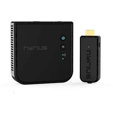 Show moreIntroducing the Nyrius Aries Prime Wireless Video HDMI Transmitter & Receiver, your perfect companion for a clutter-free streaming experience. Say goodbye to tangled wires and cumbersome connections—this powerhouse device allows you to stream true 1080p high definition 3D video & digital audio directly from your laptop, PC, gaming console, or cable provider right to your TV or projector. With its sleek design, you'll not only enjoy superior technology but also a product that harmonizes beautifully with your home decor.