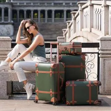 NZBZ Vintage Luggage Sets for Women, PU Leather Retro Suitcase, Vintage Trunk Luggage, Vintage Suitcase Set (Dark Green, 4-Piece-Set(14/20/24/28))