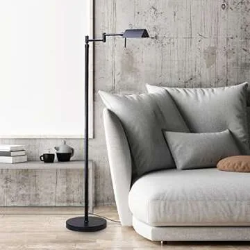 O’Bright Dimmable LED Pharmacy Floor Lamp, 12W LED, Full Range Dimming, 360 Degree Swing Arms, Adjustable Heights, Standing Lamp for Reading, Sewing, and Craft, ETL Listed (Black)