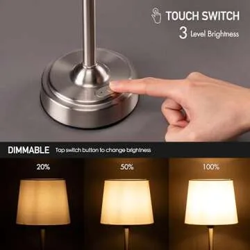 O’Bright Seraph - Cordless LED Table Lamp with Dimmer, Built-in Rechargeable Battery, 3-Level Brightness, Patio Table Lamp, Bedside Night Lamp, Ambient Light for Restaurant, Brushed Nickel