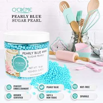 O'Creme Blue Edible Sugar Pearls: Cake Decorating Supplies, 8 Oz, Certified
