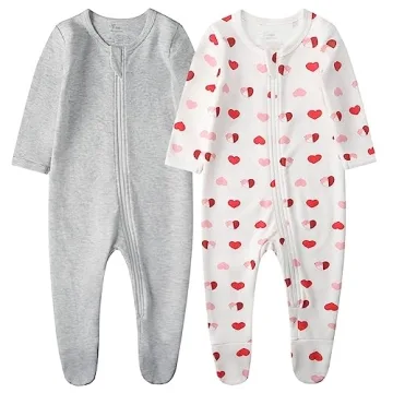 Show moreIntroducing the O2 BABY Baby Boys Girls Organic Cotton Zip Front Sleeper Pajamas, Footed Sleep 'n Play, designed for the ultimate comfort and style for your little ones aged 0-3 months. Crafted from 100% organic cotton, these sleepers are not only luxurious and soft to the touch but also breathable, making them gentle and suitable for a baby’s sensitive skin. The heart and grey melange design features an adorable bear pattern that’s perfect for snuggling, ensuring your baby looks cute while feeling warm and cozy. The zip-up style allows for easy dressing and hassle-free late-night diaper changes, providing a practical yet fashionable solution for new parents.