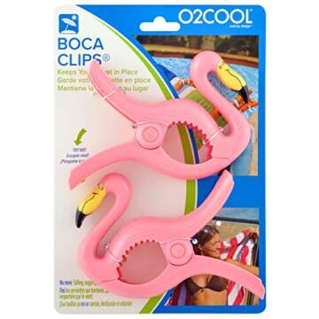 O2COOL Bocaclips - Beach Towel Clips for Beach Chairs, Patio and Pool Accessories - (Flamingo) 2 Count
