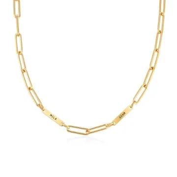 Show moreIntroducing the exquisite Ivy Name Paperclip Chain Necklace by OAK & LUNA, an elegant fusion of style and personalized expression. This stunning piece is meticulously crafted to elevate your jewelry collection, offering you the unique opportunity to showcase your individuality with custom engraved charms. With the capacity to add 1-4 charms, each designed to hold up to 10 characters in all capital letters, this necklace serves as a canvas for your personal story. Celebrate loved ones, special dates, or motivating words by wearing a piece that articulates who you are.