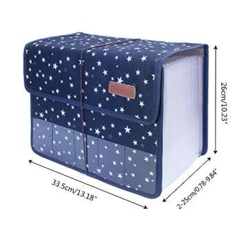 Oak-Pine Cute Portable Accordion File Folder - 13 Pockets, A4, Letter Size, Blue Star
