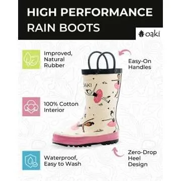 OAKI Toddler Rain Boots - Lightweight Waterproof Baby Boots with Easy-On Handle for Kids - Durable Rubber for All Seasons