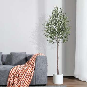 OAKRED Artificial Olive Tree,7FT Tall Fake Plant Faux Olive Plants for Indoor,Natural Fake Tree,Artificial Silk Plants for Office Home Living Room Floor Patio Greening Porch Decor,Set of 1